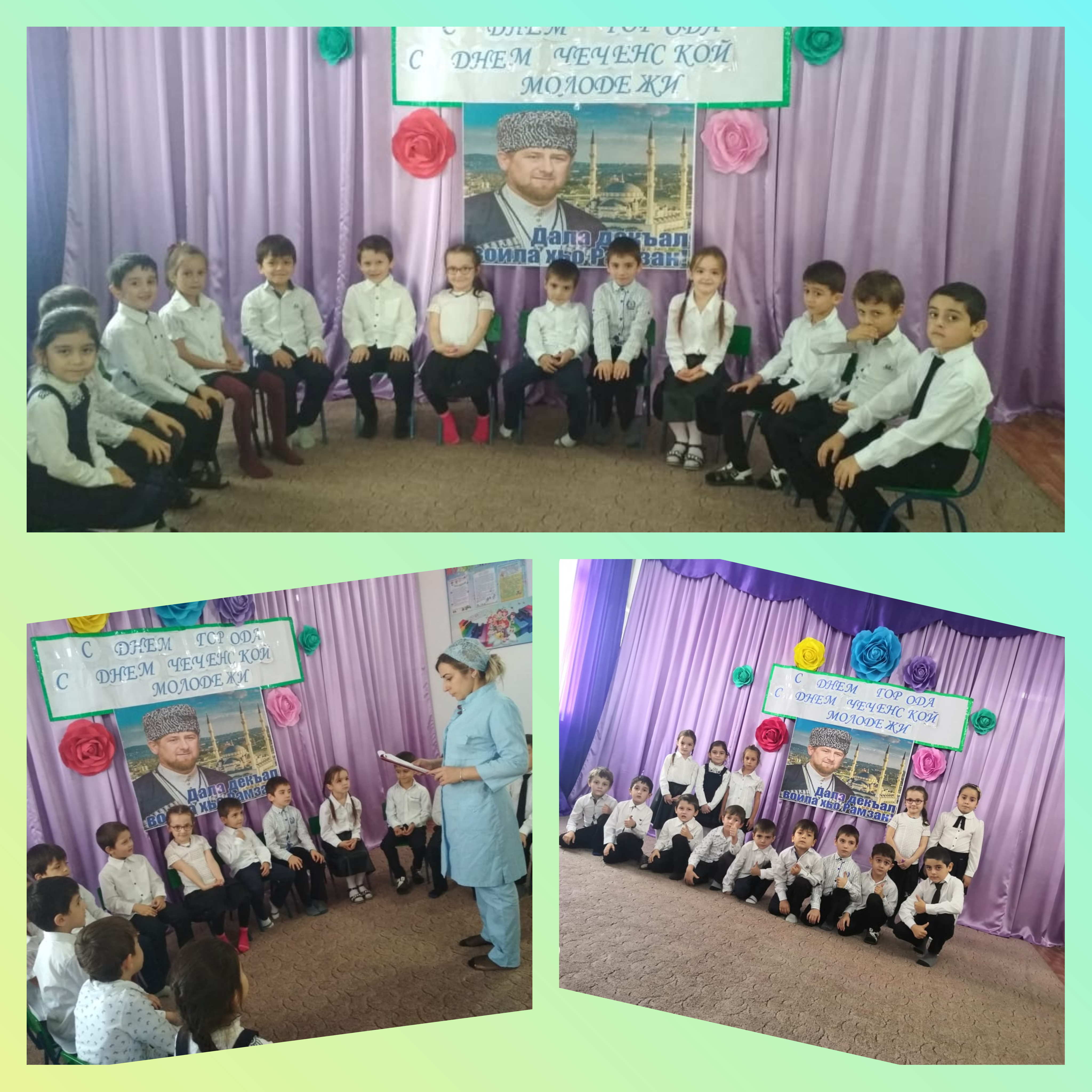 С целью пастриотического воспитания во всех возрастных группах с 3 по 7 октября прошли беседы посвященные празднику День рождение Р.А. Кадырова, День города, День молодежи.