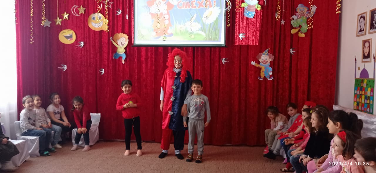 04.04.2023Цель: развитие позитивного самоощущения, связанного с состоянием раскрепощенности, уверенности в себе. Вызвать интерес к персонажам праздника. Доставить детям радость и удовольствие от праздника.