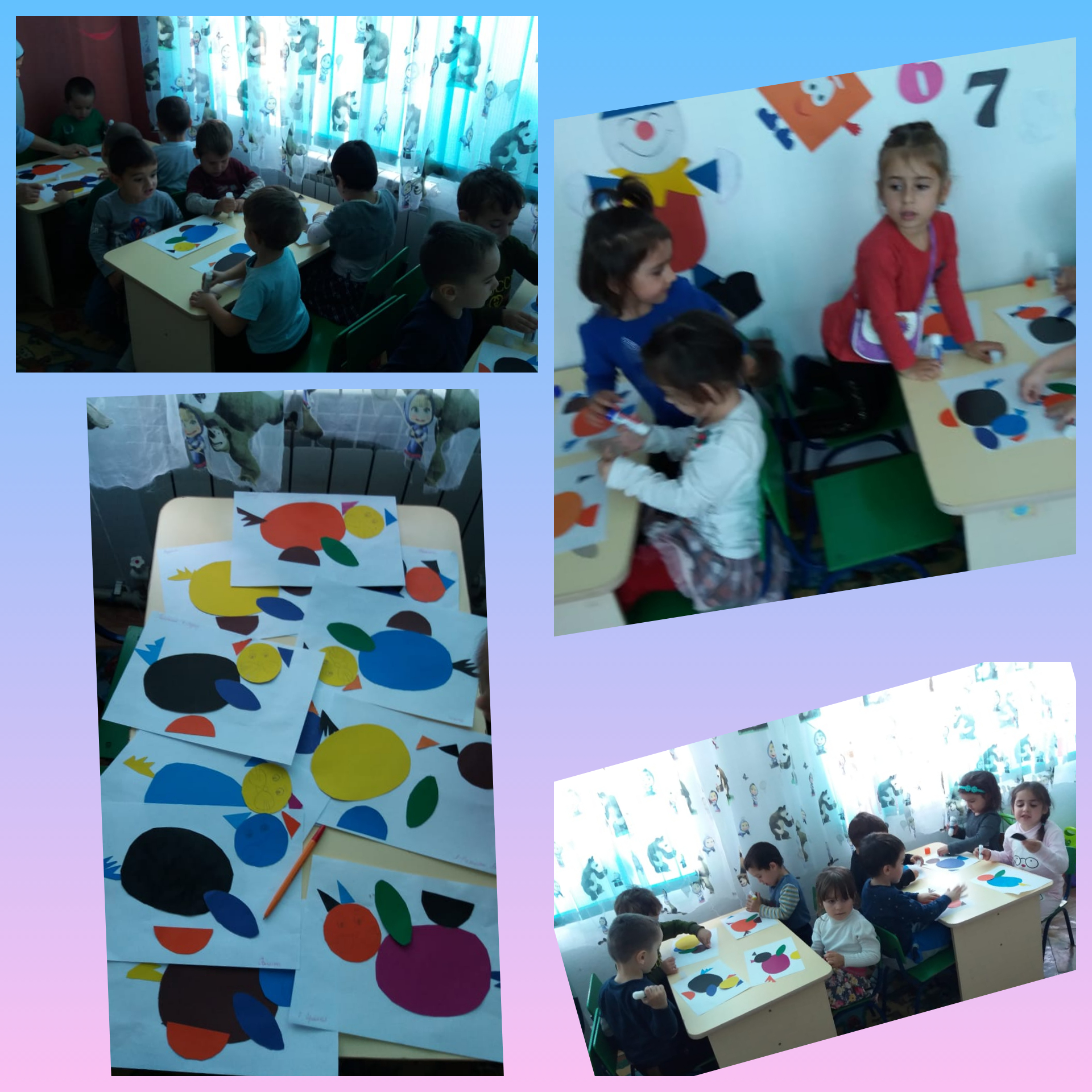 Художественное-эстетическое развитие. Апликация "Щенок". Цель: учить вырезать круги, овалы,аккуратно их наклеивать.